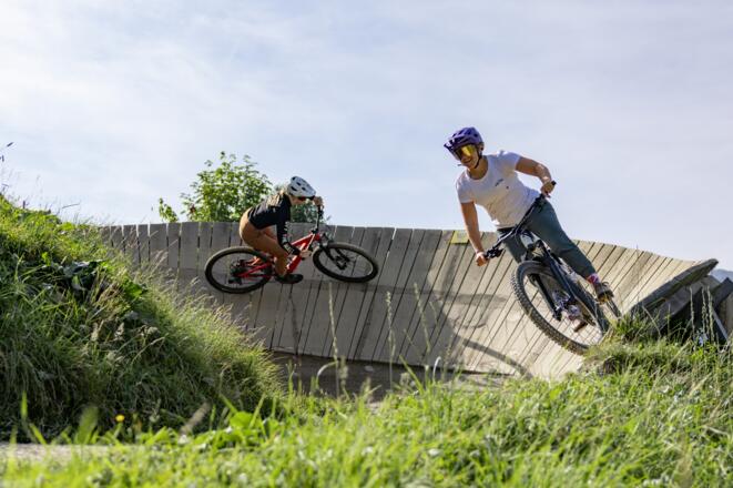 Dieser flowige und relativ einfache Trail schlängelt sich durch eine idyllische Wiesenlandschaft, macht sich dabei die natürliche Topografie des Hanges auf spielerische Art und Weise zu Nutze und sorgt durch die vielen kleinen Tables, Turns und Wellen für viel Spaß und Abwechslung bei der Abfahrt.