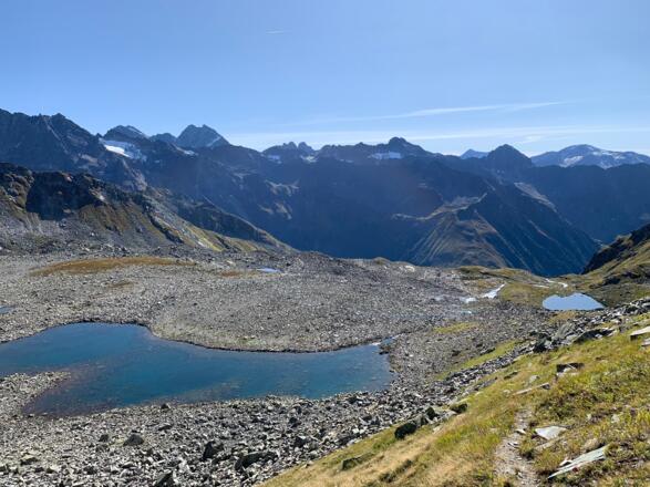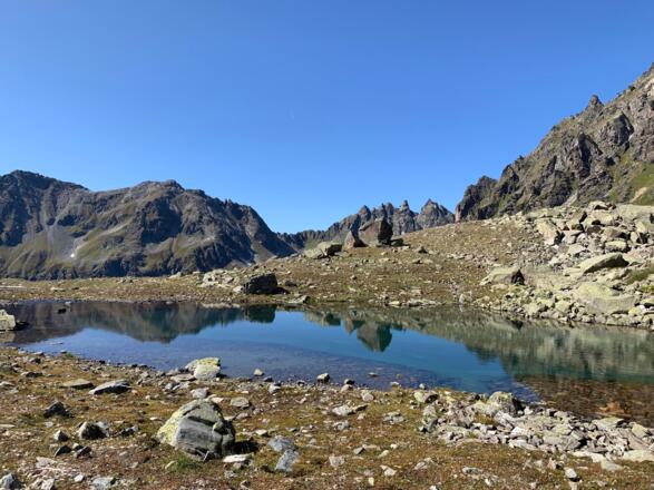 Von der Tübinger Hütte aus erfolgt der Aufstieg zum Plattenjoch. Hier passierst Du die Grenze zur Schweiz. Weiter geht es bergab vorbei an mehreren Gebirgsseen Richtung Süden bis zum Seetalsee wo sich die Seetal-Selbstversorgerhütte befindet. Kurz vor der Seetalhütte erfolgt ein neuerlicher Aufstieg zur „Scharte“. Nun geht es bis auf eine leichten Anstieg zur Silvrettahütte SAC bergab.