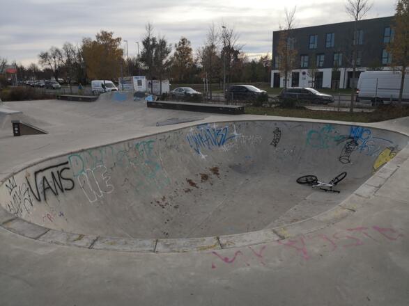Die moderne Skateanlage aus Beton in Trudering-Riem hat eine Vielzahl an unterschiedlicher Obstacles. Die "Hindernisse" eignen sich gut für Anfänger, aber auch für Fortgeschrittene Skateboardfahrer lohnt sich eine Anfahrt. Auch das Skatepark Mobil fährt den Park regelmäßig von Mai bis Oktober an, um Interessierten die Kunst des Skatens näherzubringen. Dies geschieht dadurch, dass man sich Skateequipment kostenlos leihen und unter Anleitung von Coaches das Fahren erlernen kann.