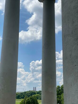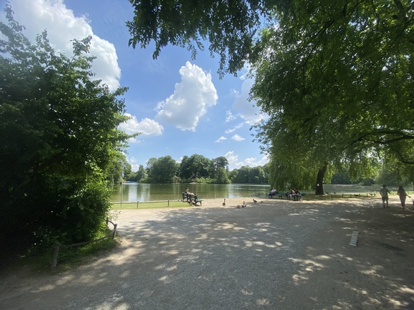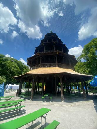 Für dich geht es danach nach links weiter auf die Feilitzstraße in Richtung Englischer Garten, direkt auf den Kleinhesseloher See zu. Hier angekommen sammelst du deinen dritten Stempel ein, während du dazu eingeladen bist eine enstpannte Yoga Session mitzumachen und dabei den unzähligen kleinen Gänsen beim Tratschen zuzusehen. Das Wasser übt eine tiefe Ruhe aus und davon aufgetankt kannst du mit neuer Energie deinen Weg zum Monopteros einläuten. Oben am Hügel begestert der Säulentempel mit einem unvergleichlichen Ausblick bis hin zun den berühmten Türmen der Frauenkirche. Währen du dem Live Vortrag in atemberaubender Kulisse lauschst, kannst du hier auch ganz einfach deinen vierten Stempel abholen. Wow!