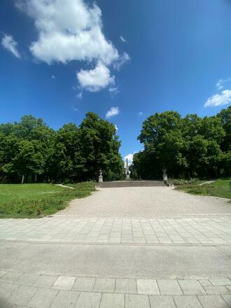 Wir treffen uns am Ackermann Bogen am Olympiagelände. Hier wartet bereits der erste Stempel auf dich. Glückwunsch! Danach geht es weiter Richtung Luitpoold Park, am Pfarramt St. Sebastian vorbei und zum beeindruckenden Obelisk am Eingang des Parks. 3 Stufen und eine inspirierende Weite erwarten dich trotz der kleinen Gesamtfläche. Hier erhältst du deinen zweiten Stempel. Yeah! Von hier, die kühlen schattigen Wege genießend, wanderst du Richtung Münchener Freiheit. An der Leopoldstraße 77, unmittelbar vor dem kleinen Brunnen ist das Wohnhaus von Toni Pfülf (1877-1933), Vorreiterin der Frauenrechtsbewegung. Zu ihren Ehren ist eine Gedenktafel am Wohnhaus angebracht. Direkt gegenüber steht der Brunnen mit der Statue von Bally Prell (1922-1982), die ebenfalls im selben Haus wohnte. Prell stand bereits in den 40er Jahren für eine neue Form der Weiblichkeit ein und gegen den aufkommenden Schönheitswahn. Sie blieb ihrer rustikalen Bühnenfigur treu und trat mit ihrem berühmten Lied "Die Schönheitskönigin" am Platzl auf. Ihre Gesangskarriere startete sie im Alter von 5 Jahren im Münchner-Odeons-Saal.