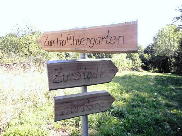 Aus Richtung Miltenberg nach dem Friedhof links über die „Kleine Steige“ durch den Hofthiergarten weiter zum Wald und hier rechts zum Parkplatz Ruheforst.