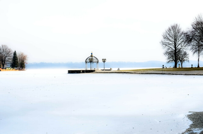 Das Strandbad am Strandkurhaus Waging am See hat auch im Winter seinen besonderen Reiz.