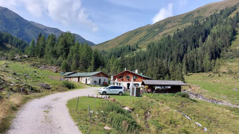 Kurz unterhalb oder direkt bei der Flauerlingeralm Parkmöglichkeit für die, die trotz Fahrverbot mit dem Auto zur Alm gefahren sind.
