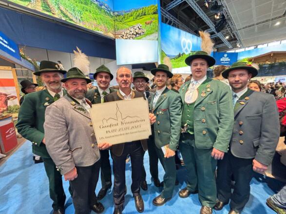 Traunstein/Berlin (hö) – Bayerns größtes Trachtenfest, das Gaufest des Gauverbandes I findet heuer in der Stadt Traunstein als passender Beitrag zum 650-jährigen Stadtjubiläum statt. Zur Übernahme des großen Festes haben sich die drei Trachtenvereine Traunstein, Hochberg und Rettenbach gemeinschaftlich bereit erklärt. Die Vorbereitungen sind in vollem Gange, die Bewerbung findet in vielfältiger Weise, unter anderem zusammen mit dem „Trachtensommer“ und den weiteren Gaufesten in Brannenburg (Inngau) und Feldwies (Chiemgau) durch den Tourismusverband Chiemsee-Alpenland sowie derzeit in besonderer Weise bei der noch bis Sonntag, 26. Januar dauernden Internationalen Grünen Woche in der Bayernhalle 22b in Berlin statt.