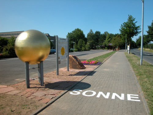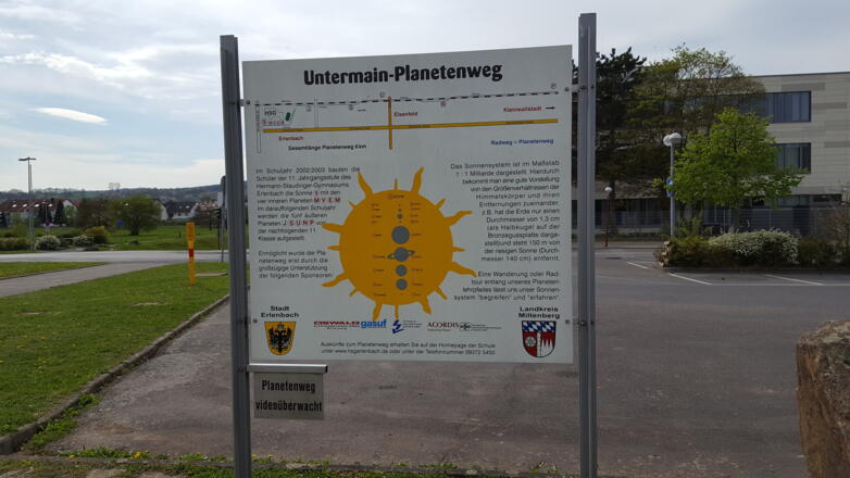 Schüler des Hermann-Staudinger-Gymnasiums Erlenbach bauten die Sonne mit den vier inneren Planeten und den fünf äußeren Planeten im Maßstab 1:1 Milliarde. Eine Radtour oder Wanderung entlang des Untermain-Planetenweges ist ein Erlebnis für die gesamte Familie.