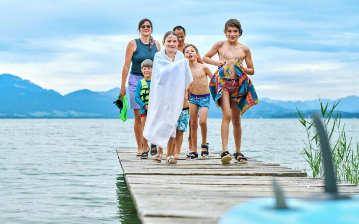 Ein herzliches "Grüß Gott" an alle Erholungssuchenden hier im schönen Chiemgau! Wir, die Familie Kirchmaier, heißen euch auf unserem Urlaubshof direkt am Ufer des malerischen Chiemsees willkommen. Seit vielen Jahren verbringen Feriengäste bei uns in Schützing die schönste Zeit des Jahres. Urlaub auf dem Kirchmaier-Hof bedeutet Erholung inmitten der Natur des idyllischen Chiemgaus mit direktem Blick auf den Chiemsee und die Berge. Gleichzeitig ist unser Hof ein landwirtschaftlicher Familienbetrieb, der insbesondere unseren kleinen Feriengästen jede Menge Abenteuer auf dem Bauernhof und mit den verschiedenen Tieren bietet. Was wir anpacken, machen wir mit Herzblut: Darum bauen wir unseren Urlaubshof aktuell aus und richten neue Luxus-Ferienwohnungen und Doppelzimmer, einen Wellnessbereich mit drei Saunen und Ruheraum und ein gemütliches Hofcafé für unsere Gäste ein. Die einzigartige Lage unseres Hofes direkt am Ufer des Chiemsees möchten wir gerne mit unseren Gästen gemeinsam genießen. Erlebe auch du bei uns auf dem Urlaubshof Kirchmaier einen unvergesslichen Urlaub, und lass dich von der einzigartigen Alleinlage unseres großen Urlaubsparadieses am Chiemsee verzaubern. Wir freuen uns auf deinen Besuch!