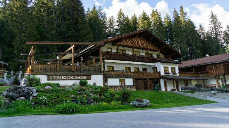 Tipp: An heißen Tagen können Sie sich hier bei der Kneippanlage (Armbecken) abkühlen. Biegen Sie nach dem Waldgasthaus Triendlsäge nach links ab und folgen Sie dem Schotterweg bis Sie die Bundesstraße erreichen. Folgen Sie der Bundesstraße, vorbei am Gasthof Neuleutasch. Nachdem Sie ca. 2 Kilometer auf der kurvigen Bundesstraße bergab hinterlegt haben, führt links erneut ein Schotterweg in den Wald hinein. Folgen Sie diesem Schotterweg bis Sie bei der Bergbahn Kreithlift in Leutasch angekommen sind. Halten Sie sich ab sofort links und folgen der Asphaltstraße bis Sie nach wenigen Minuten am Hotel Kristall ankommen.