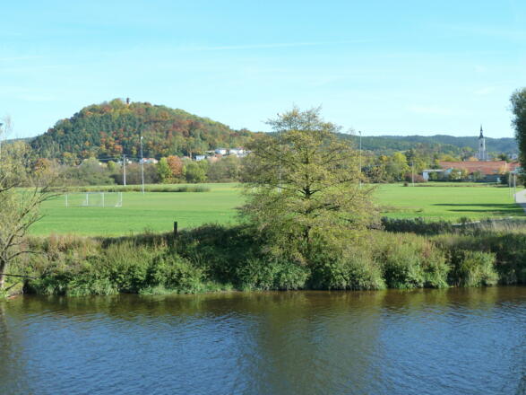 Weiter geht es über die Regenbrücke hinein in den Wald, und dann gleich bergauf. Immer wieder kann man hier den Blick auf das Regental von oben werfen. Ihr befindet euch bereits auf dem Rückweg der Tour und kommt am Schloss von Ramspau vorbei. Am Hang des Berges entlang wieder zurück in das Regental, diesmal aber auf der anderen Seite.