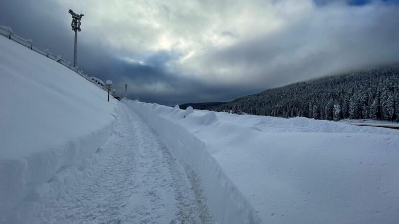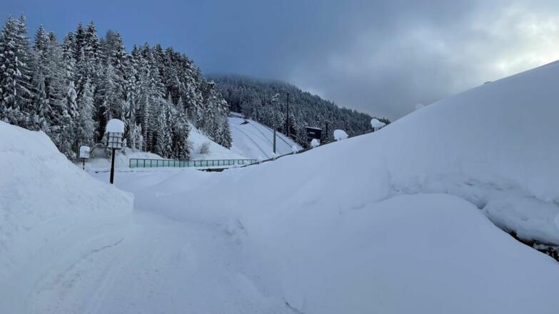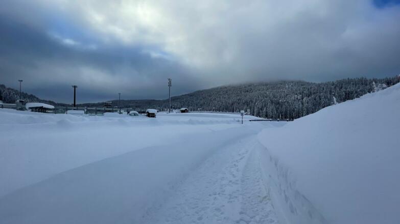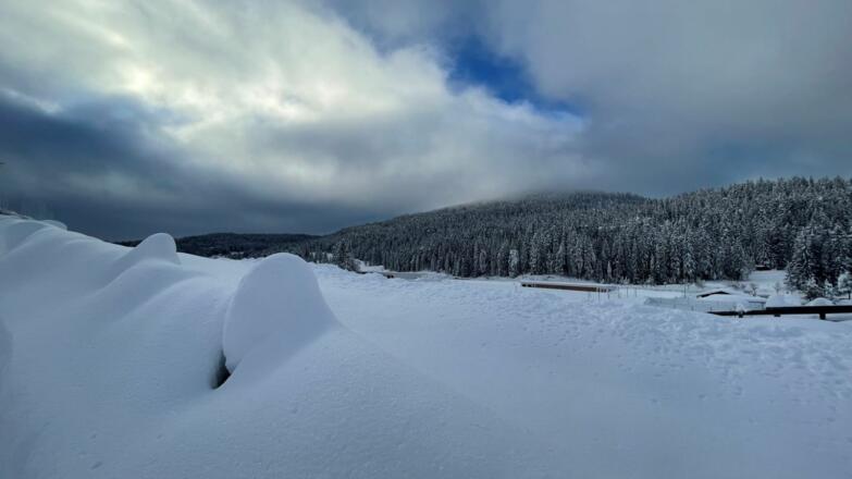 Am Seekirchl nimmt man die nächstbeste Möglichkeit auf die Bundesstraße, spaziert dort bis zur Tennishalle und begibt sich dort rechts ab auf den Wanderweg (Nr. 2) durch den verschneiten Kirchwald. Unterwegs kreuzt man hier einmal die Langlaufstrecken - bitte immer auf Läufer*innen achten! Gleich nach der Loipenkreuzung führt der Weg wieder zur Bundesstraße und kreuzt diese zum Seewald auf die andere Talseite.