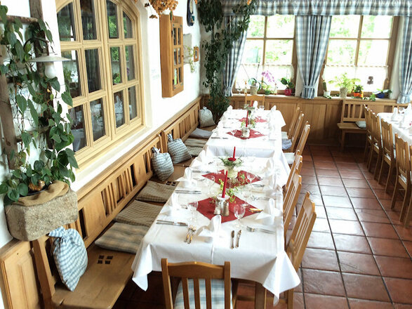 Und so bieten wir in unserem Hotelrestaurant feine bayerische Küche mit all ihren Schmankerln - im Sommer auch auf unserer Terrasse.