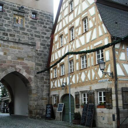 Das Wirtshaus liegt im Herzen von Lauf, direkt am Hersbrucker Tor. Genießen Sie fränkische Küche, leicht bis deftig und nachmittags hausgemachte Kuchen.Das denkmalgeschützte Anwesen wird umrahmt von der historischen Stadtmauer und präsentiert sich innen mit einem ansprechenden, rustikalen Ambiente. Im Winter wärmt der offene Kamin, im Sommer kann man Spezialitäten vom Holzkohlegrill auf der Terrasse genießen.Parkplätze finden Sie im Innenhof.Öffnungszeiten: Dienstag-Freitag