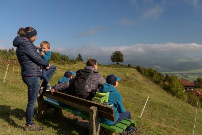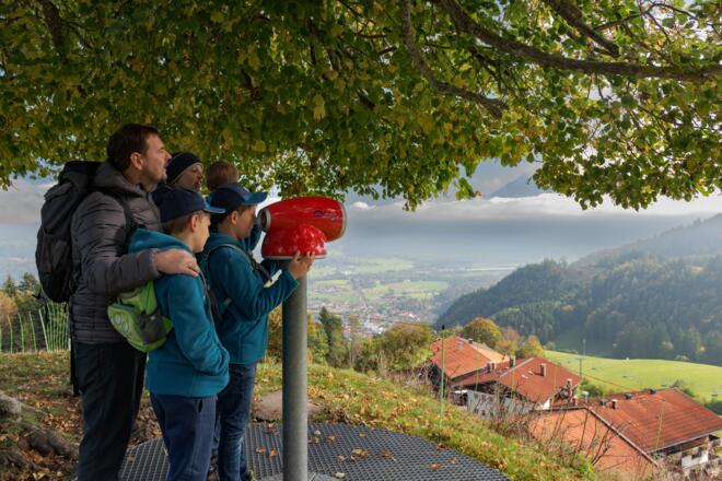 Diese kleine Wanderung beginnt an der Bergstation des Erlebnisbergs Oberaudorf-Hocheck. Von hier aus geht es oberhalb des Ziegengeheges leicht bergauf dem Forstweg folgend. Kurz vor dem Zaun überqueren Sie das Hochmoor zu Ihrer rechten Seite. Von hier aus folgen Sie den Serpentinen weiter bis zu einem traumhaften Ausblick über die umliegende Bergwelt. Hier finden Sie auch das Gipfelkreuz. Nutzen Sie die Gelegenheit und werfen Sie einen Blick durch das kostenlose Viscope Fernrohr. Hier werden Ihnen die Namen der jeweiligen Berge, auf die man schaut, angezeigt. Hier können Sie gleich Ihr Wissen der benachbarten Berge testen. Wie viele Berge kannten Sie bereits beim richtigen Namen? Wer möchte kann den Ausblick aber auch einfach von den Bänken am Gipfelkreuz in Ruhe genießen und entspannen. Vom Gipfelkreuz geht es wieder bergab in Richtung Ausgangspunkt.