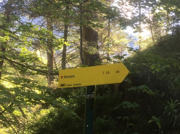 Eine Rast auf der idyllischen Steinalm lohnt sich, bervor der versicherte Steig in Angriff genommen wird.
